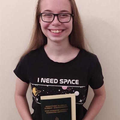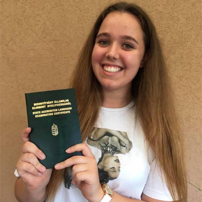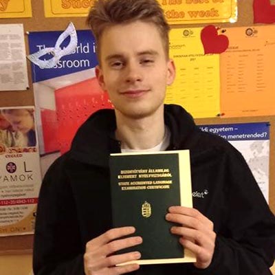 6. osztályosként a nagykőrösi angol verseny nyereménye volt számomra egy 40 órás nyelvtanfolyam a ceglédi MySchool nyelviskolában. A szintfelmérőt követően bátorítottak arra, hogy próbáljam meg a B2-es szintű vizsgát. Nagyon szerettem az itteni oktatásban, hogy saját időbeosztással, kötetlenül, online tudtam haladni. A támogatásnak és segítségnek köszönhetően a pandémiás időszakban is eredményesen tudtam tanulni. Végül a 8. osztály végén sikeres vizsgát tettem, amit köszönök a MySchool csapatának!